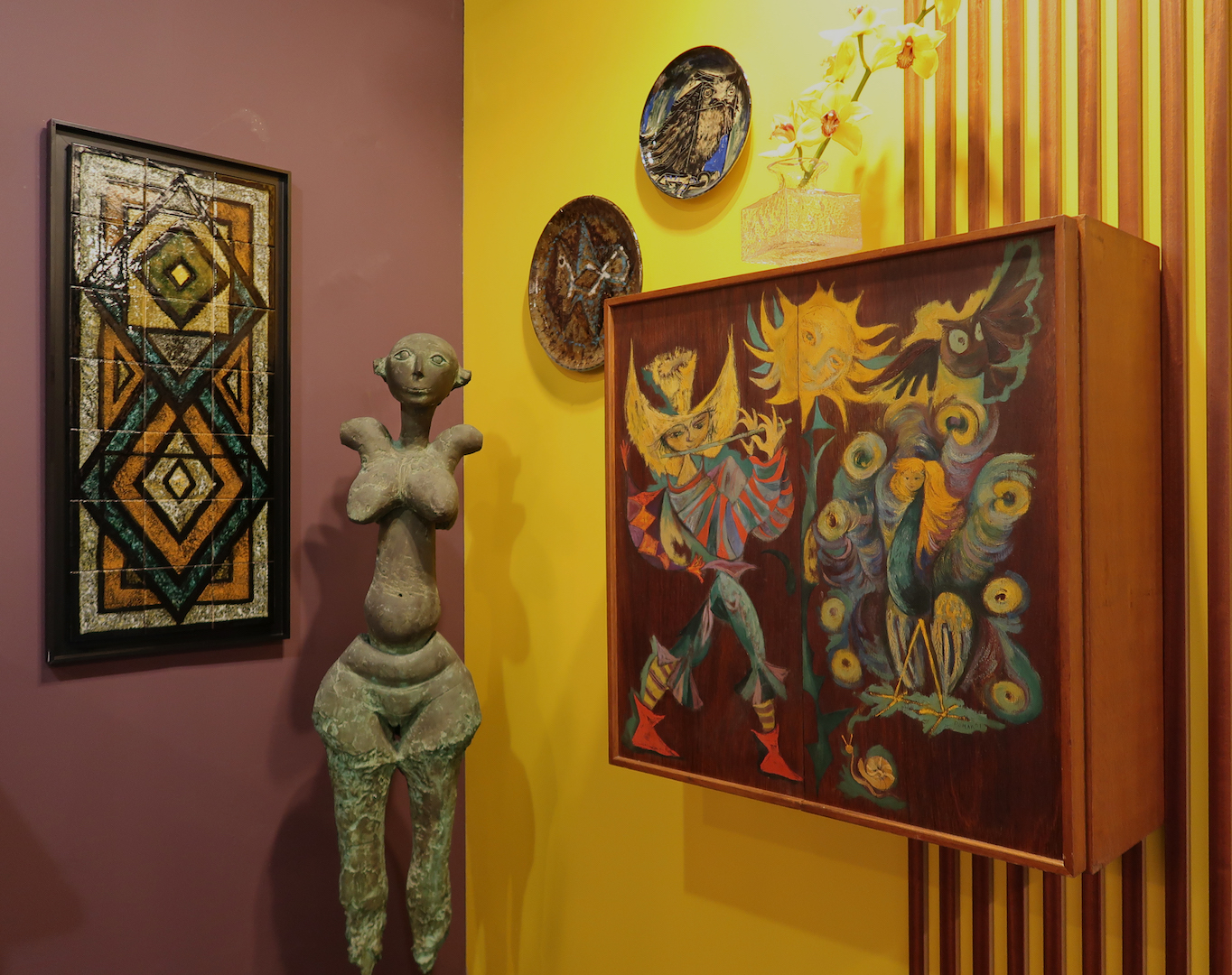 A very important Cocktail Cabinet, designed by the prestigious portuguese architect Conceição Silva for his home, with doors painted by the famous artist Júlio Pomar. Only three pieces of furniture are known as having been painted by this artist. This an exclusive and rare piece of furniture design.